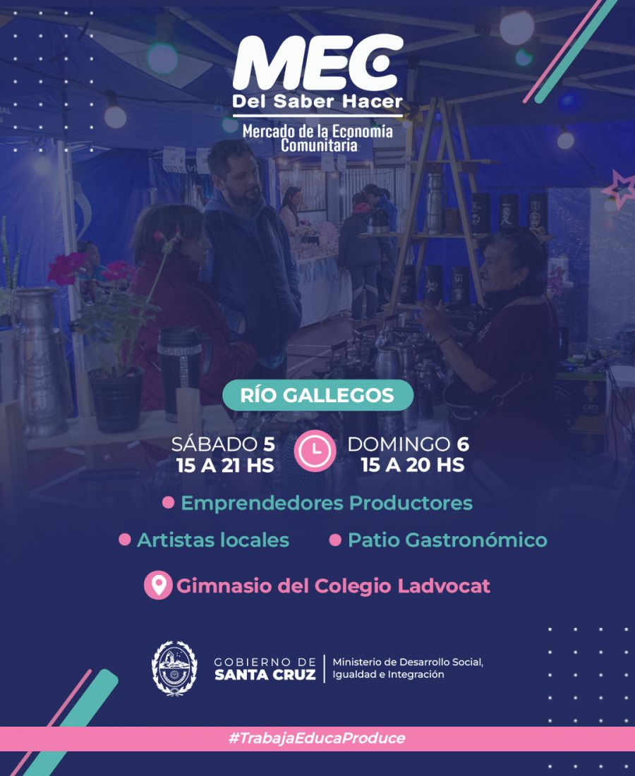 Este sábado, el MEC abrirá sus puertas en el colegio Dr. Julio Ladvocat, entre las 15:00 y las 20:00 horas. Durante las dos jornadas emprendedores de la economía social presentarán y comercializarán sus productos, que van desde delicias gastronómicas y tejidos artesanales hasta productos aromáticos, entre otros; contando además con la presentación de artistas locales.